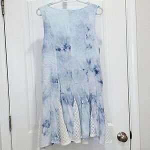 Entro tie dye, Blue, with crochet, flowing rayon dress, Size Large