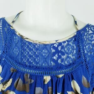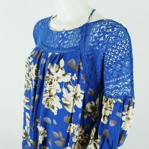 Entro tunic Blouse small cobalt blue lace floral keyhole Open Back 3/4 sleeve