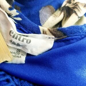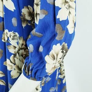 Rayon, crisscross back , lined,preowned, no flaws, Smoke-free, measurements laying flat: underarms 21", center of front down to Hem 28",sleeve 20" coverup long shirt cobalt floral swing 3/4 sleeve with elastic at the arms