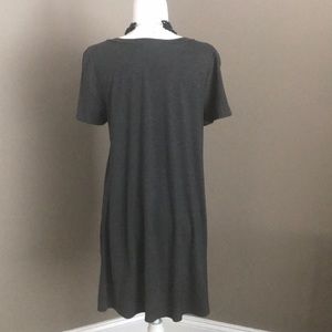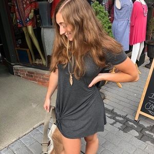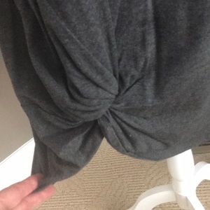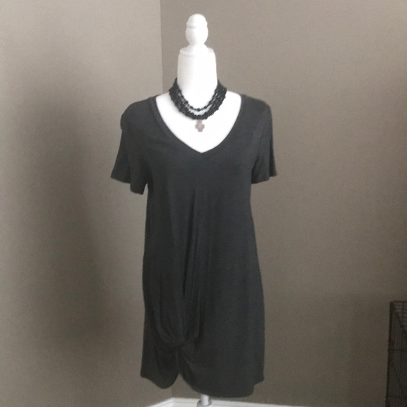 Charcoal gray tunic or dress if under 5’5”, brand new, great knot detail on one side on hemline, v neck, looks great with leggings, pit to pit is 20”, length is 35”, smoke free