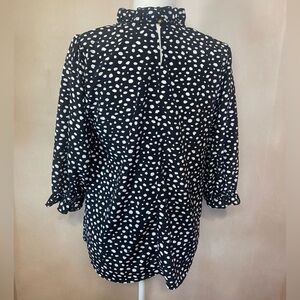 Entro women's M black/white mock ruffle neck relaxed fit blouse w/ keyhole EUC