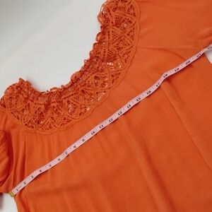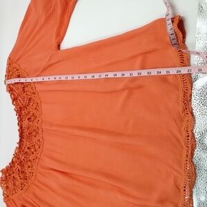 I wore this just barely off the shoulder but can be worn as a regular blouse. The neck is stretchy.