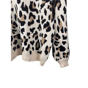 This ultra-soft crewneck sweater features a chic leopard print design, perfect for adding a touch of wild elegance to your wardrobe. Ideal for layering, it's a stylish choice for both casual outings and cozy nights in. Gently worn, in excellent used condition.