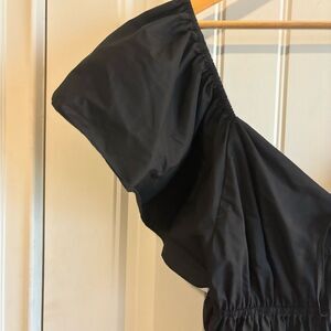 Entro Black Off-Shoulder Poplin Maxi Sundress Tiered with pockets