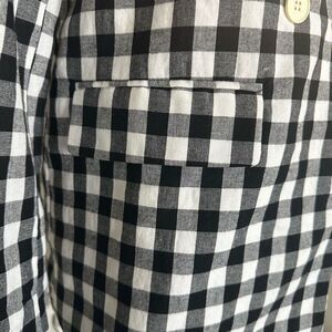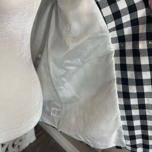 Chic black and white buffalo gingham double-breasted blazer. Features two front buttons and two front “faux” pockets. A classic, versatile piece perfect for a polished, preppy look. Can be dressed up or down. Excellent like new condition! Size M. Slightly oversized fit.
