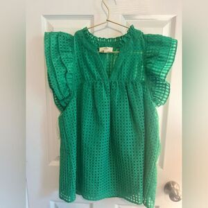 Entro Emerald Eyelet Blouse with Ruffle Sleeves