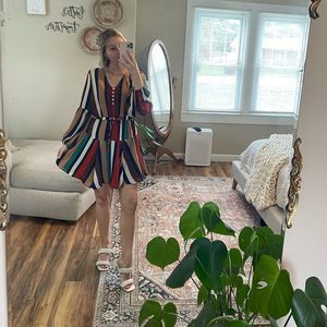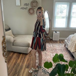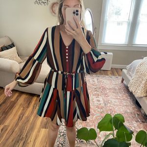 Entro Dress Size: S Multi-color In EUC! Button and tie, synched waist detail