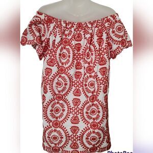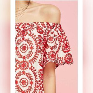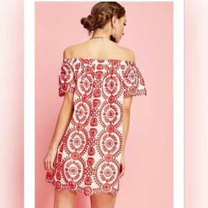 NWT RED AND WHITE OFF SHOULDER EMBROIDERED SHORT DRESS size small