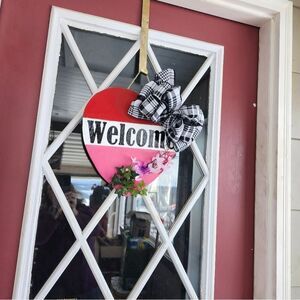 Entryway Heart Shaped Welcome Sign Wooden Floral Decoration 12 Inch Front Door