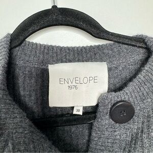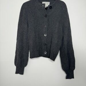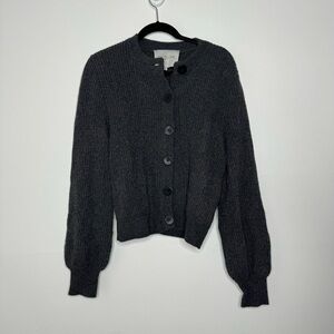 Envelope 1976 dark grey merino wool cashmere knit ballon sleeve cardigan
