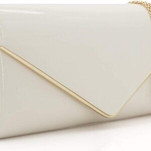Ivory Vegan Patent Leather Envelope Clutch — A versatile evening essential.