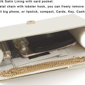 Features: Glossy vegan patent leather with a sleek, foldover design and a strong magnetic snap to keep your essentials secure. Comes with a sturdy 47" metal chain for three styling options: crossbody, shoulder, or clutch in hand. The satin-lined interior includes a slide pocket, perfect for your phone, cards, and small essentials.