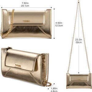 Features: Elegant envelope-style clutch with a magnetic flap, spacious enough for your phone, cards, lipstick, and keys. Comes with a detachable chain strap, so you can carry it by hand or wear it over your shoulder for hands-free ease. Durable hardware and a timeless vibe make it perfect for formal events or dressy casuals.
