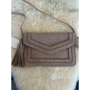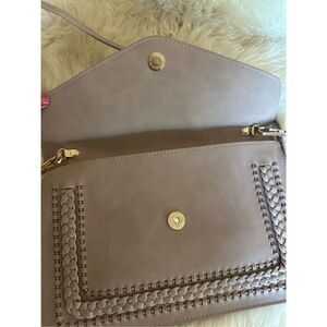 Go from day to night with this beautiful clutch bag. Use as a crossbody too with the removable strap (not adjustable). New with tag attached. Made of Polyurethane. Lightweight.