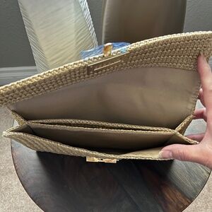 Super cute straw clutch bag for any occasion lock closure, interior has 3 compartments. Perfect size to keep mobile phone, lipstick, perfume, key and so on; compact size makes it convenient for you to carry around whether you are going to the beach or going out for a night trip