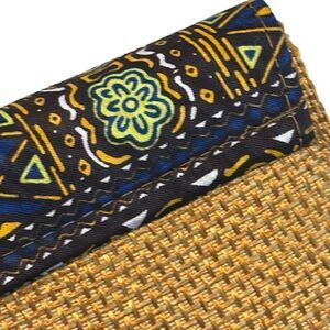 Envelope clutch contrast print warm colors snap and zipper closure purse.