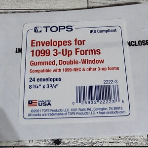Envelopes for 1099 3-Up forms Gummed Double Sided IRS Complaint NEW 24 pack