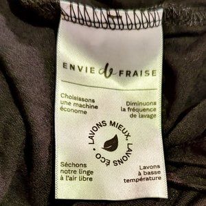 This shirt from the French maternity brand Envie de Fraise is both stylish and great for nursing. It has a built-in "modesty panel" (wide piece of fabric) that goes across the breast area. The two sides of the shirt wrap across the breast area -- sort of like the top of a robe does -- and tie at the side of the waist using sewn-on ties. It sounds complicated, but it's really not. To nurse, you just lift the modesty panel; you don't actually untie the waist belt. Fyi, since the modesty panel is not a built-in bra -- does not have breast support -- you would probably want to also wear a bra underneath the shirt. The shirt has pretty details, including slightly puffed sleeves, 3/4-length sleeves, a flattering v-neck, and the waist tie, which is long enough to tie into a bow. Because the waist ties above your belly, the shape is nicely fitted and flattering for your bump. The material, which is called Lenzing™ Ecovero™, is designed to be eco-friendly; it's a viscose derived from renewable wood sources and is OEKOTEX certified. The shirt goes well with leggings, skinny jeans, and fitted skirts. Measures approximately 26 inches long. Arm inseam is 11.5 inches long. Pit-to-pit measurement is 15.5 inches, as is the width of the waist seam. Size is 4-6 Maternity. In excellent condition; only washed and worn a couple of times and never placed in the dryer. (Though the color may look inconsistent in the photos, it is solid black, with no weird fading.) Retails for $45. I have 2 to sell.