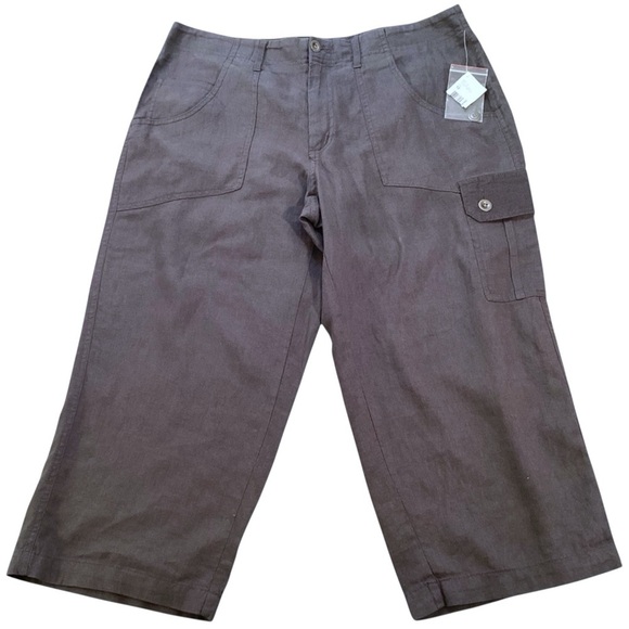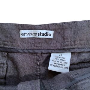 Envision Studio Linen Blend Crop Straight Leg Mid-Rise Pants Size 12 Gray Blue
