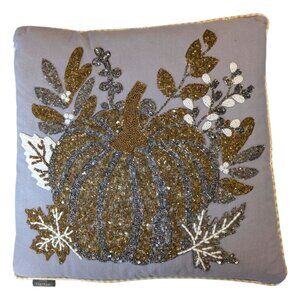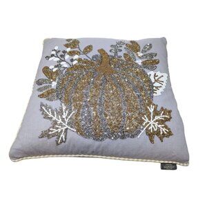 Envogue Harvest Collection Accent Pillow Pumpkin Beaded Sequin Duck Feather 20"