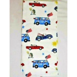 Envogue Patriotic Vintage Cars Hedgehog on Scooter 2 Kitchen Towels USA Flag