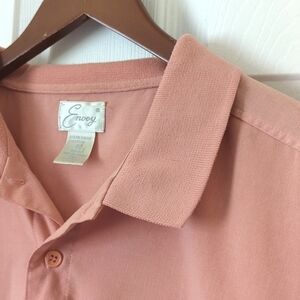 Envoy 80's Vintage Ribbed Knit Detailed Short Sleeve Polo Henley Top Pink 2X