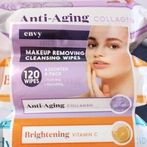 Envy Anti-Aging Makeup Remover Wipes 4 Pack Skincare Cleansing Towelettes NEW