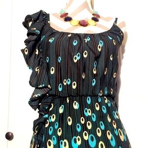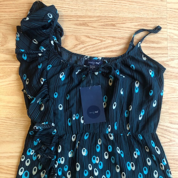 New With Tags! Light fun dress, brand new. Ruffles down the side and elastic band at waist. 100% Polyester.