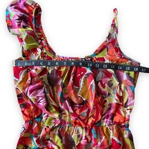Envy Me Womens Tropical Mini Dress Ruffled One Shoulder Sleeveless Tag L Fits M.