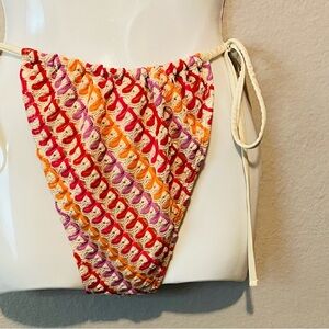Envya Women’s Red and Yellow Crochet Bikini Swimwear Sz-Large