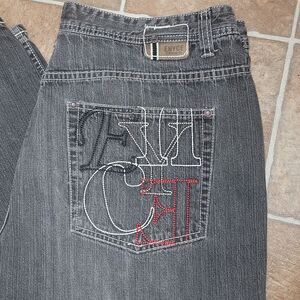 Enyce Baggy Loose Y2K Blackwash Men's Embroidered Bold Stitch Jeans Size 40 x 32