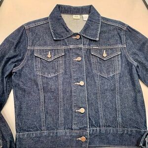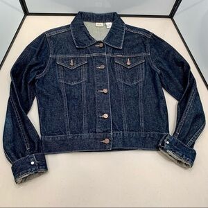 Enyce Jean Jacket Medium Black Red Buttons Flap Pockets Collar Denim Women