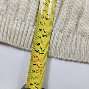 Great looking pull over with a nice print all over the sweater. As you can see in the pictures, the zippper itself works, but the little puller thing is not there.