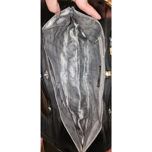 This is a beautiful bag. Love the design with the rhinestones, studs, chain, and pleated bottom.