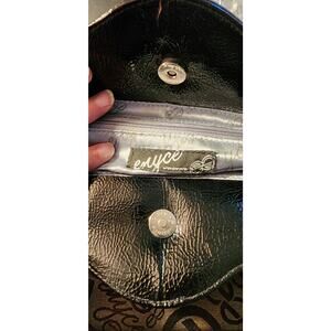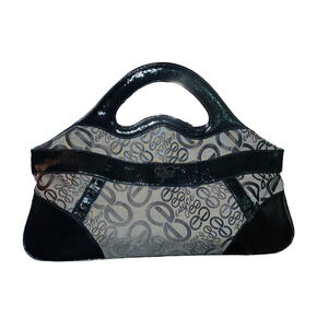Enyce canvas and patent leather clutch evening bag purse handbag.