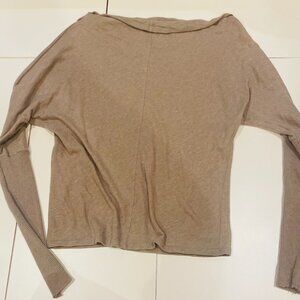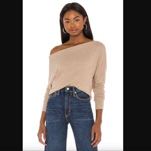 Enza Costa Cashmere Cuffed Off Shoulder Long Sleeve Top Khaki Sz M