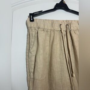 Enza Costa Cream Tan 100% French Linen Easy Pants Size 1/Small