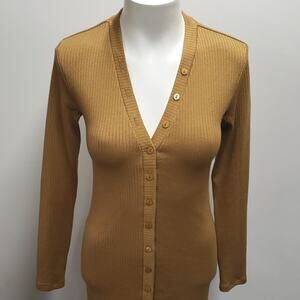 Enza Costa Dress Women's Small Ribbed Bodycon Mini Buttoned Front Sample Tan