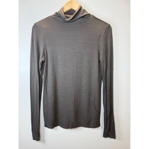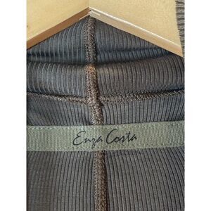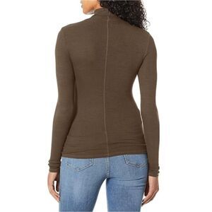 Enza Costa Rib Fitted Long Sleeve Turtleneck Top Women’s Olive Drab Size Large