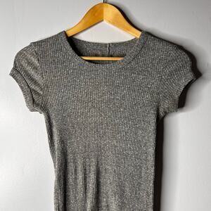 Enza Costa Ribbed Crewneck Tee Shirt Short Sleeve Women's Small Gray Minimalist