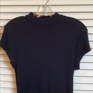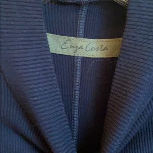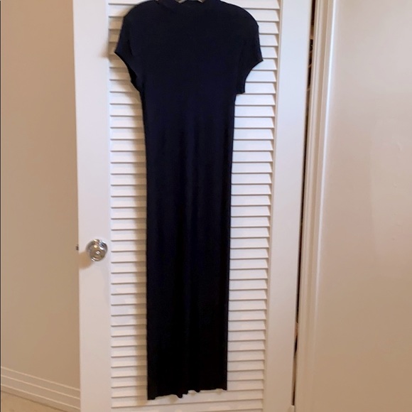 Enza Costa navy knit maxi dress. Mock neck, short sleeve. 87% viscose, 10% silk, 3% lycra. In excellent condition.