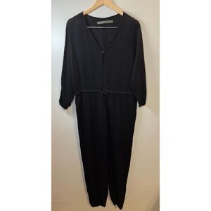 Enza Costa Tie Waist Black Cotton Gauze Jumpsuit Women’s Size 1 Long Sleeve