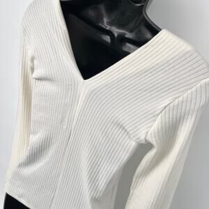 Enza Costa Women's Asymmetric Rib Knit Sweater Top NEW Size M Winter White