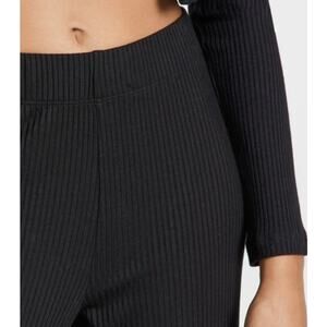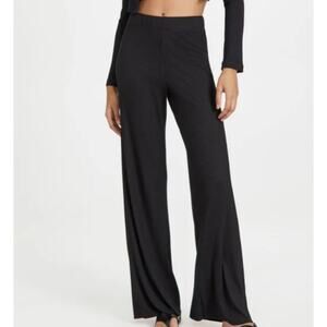 Enza Costa Women's High Rise Ribbed Luxury Knit Wide Leg Pull On Pants Black