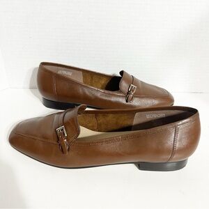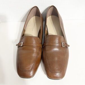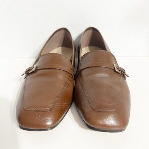 Enzo Angiolini Bernell Squared Toed Smooth Leather Loafers Flats Strap Buckle 🤎