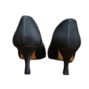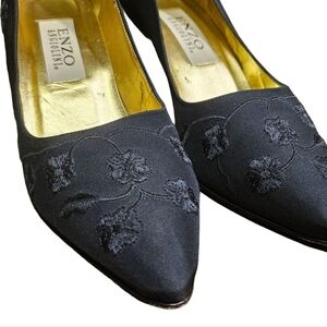 Enzo Angiolini Black Floral Embroidered 3in Slip-on Heels Size 8