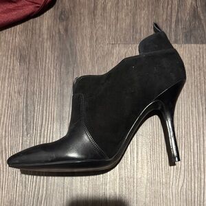 Sleek black heeled boots. Perfect for stylish outings. Comfortable and chic.