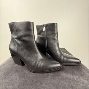 Enzo Angiolini Black Leather Pointed Toe Block Heel Ankle Boots