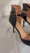Enzo Angiolini Black Leather and Gold Ankle Strap Heels
