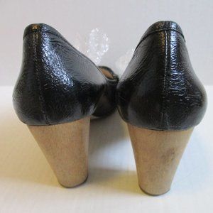 Enzo Angiolini Black Patent Crinkle 'Probably' Round Toe Pumps. 9.5M. Signature padded insoles. 3" wood grain round heels. All measurements are approximate. Please see photos for more details. 0601S